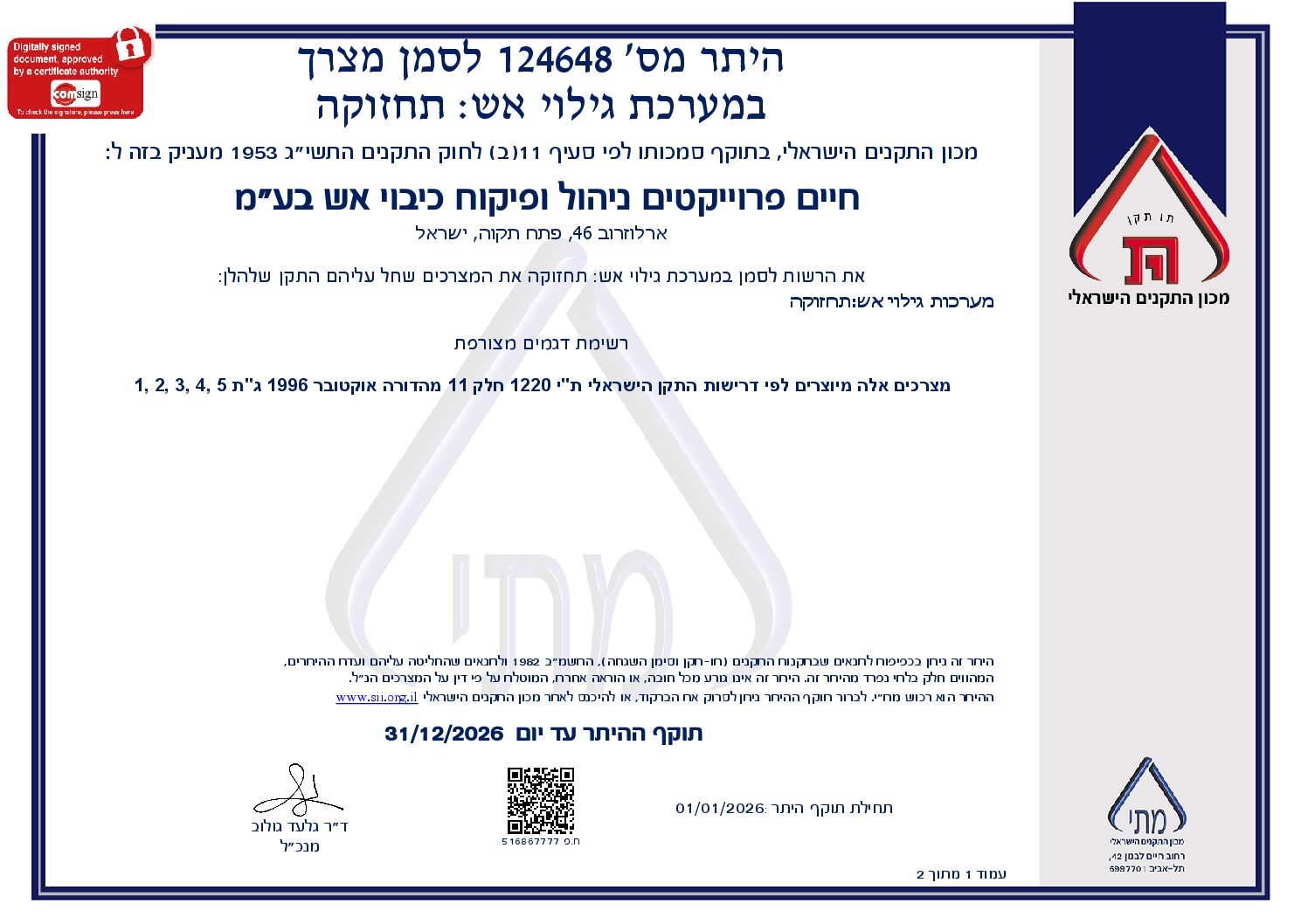 חיים פרויקטים ניהול ופיקוח כיבוי אש בע"מ מתמחה במתן שירותי כיבוי ומיגון אש עם ניסיון רב שנים בתחום, תוך הקפדה על הסטנדרטים הגבוהים ביותר של בטיחות ואיכות.